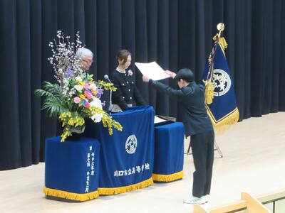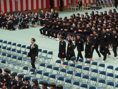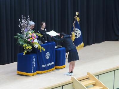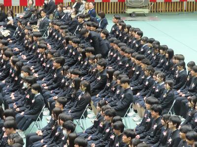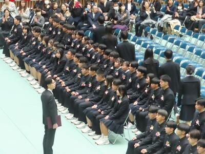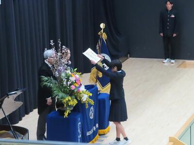 1組から10組まで入場後、担任による呼名で卒業証書授与が始まりました。大きな返事をしたり、代表生徒の堂々とした所作にとても感動しました。