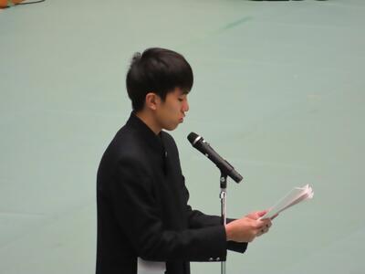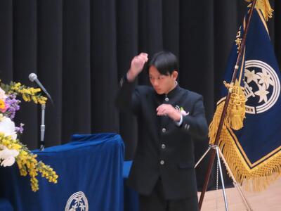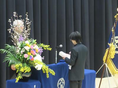 卒業証書授与の後、校長式辞、教育委員会告辞、ご来賓の方の祝辞が行われました。在校生代表による送辞や、卒業生代表による答辞が行われ、今までの学校生活を振り返り様々な方に対して、お世話になったことへの感謝の気持ちを伝えていました。