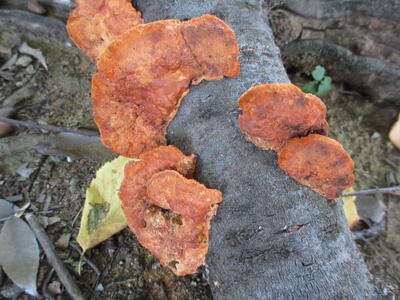 ↑ヒイロタケ。オレンジ色がとても目立つキノコ。