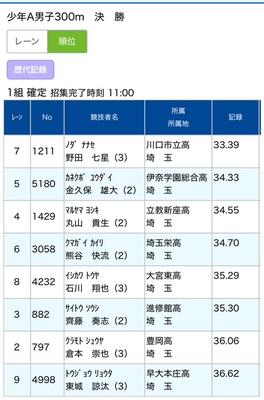少年男子A300m 第4位 野田七星(3年) 33”29(県歴代2位)