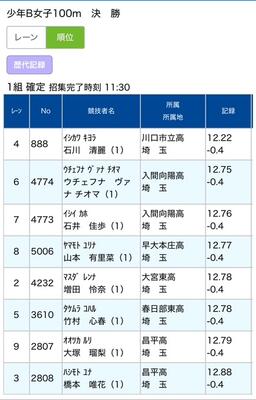 石川清麗 2組5レーン 12”01(+1.2m)→タイムレース決勝進出決定*自己ベスト
