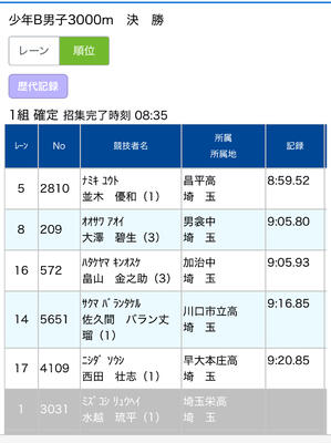 U18男子3000m 6位 吉田惺和(2年)8分22秒70(自己新記録)