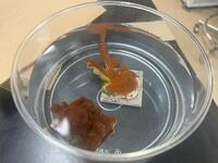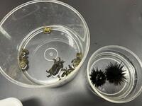 まずは初日に受精させたウニの観察です。時間が経ち、プリズム幼生からプルテウス幼生まで変化したのを確認した後、7月頭に受精させた稚ウニを和田先生から観察させていただきました。