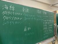 それぞれの生物の分類を黒板・ホワイトボードに書きました。その後、研究室で飼っているウミユリとサンゴを、清本先生とTA井原さんに説明してもらいました。