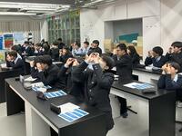 2/19(木)、理数科1年次を対象に本校坂江教諭による物理地学特別講座を行いました。