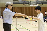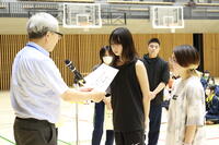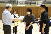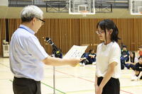 夏休み中に実施されたバドミントンの大会で優秀な成績を収めた生徒への賞状授与とバスケットボールの全国大会に出場した生徒の結果報告を実施しました。