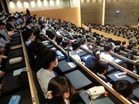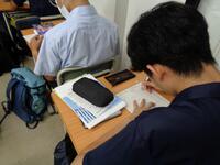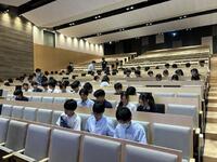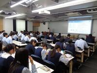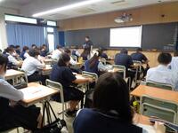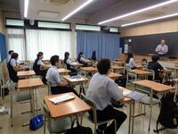各教室で実施された説明会では、大学のカリキュラムや他大学との違い、理系文系の違い、理系ではさらに理学部の特徴などについて講師の方が様々な内容を詳しく説明されていました。生徒は、真剣に話を聞きながらワークシートにメモを取り積極的に質問をしていました。