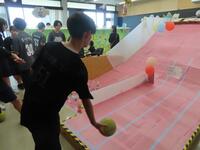 2年4組はあの人気番組にちなんで「VS山岸」を企画しました。「バンクボウリング」と「ピンボールランナー」の2種類が楽しめます。404教室で挑戦お待ちしてます!! |