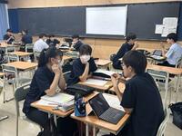 本日の中高一貫生の「総合的な探究の時間」は「2学期の活動の見通し」「中間発表(10月23日)について」「次回の授業までにできること」の確認を行いました。「探究活動」は「調べ学習」とは違って、それぞれのテーマについて質的・量的なデータ収集と分析が重要になってきます。夏休みを通じて個々が活動をしてきましたが、本日は「レポート提出に向けて、オリジナルデータの収集と分析」を本格的に始めなければならないことを全体で確認しました。生徒は今後、オリジナルデータの収集を工夫し、分析の質を高めることが求められていきます。また各ゼミごとに小集団でお互いに進捗状況の確認を行い刺激を与え合っていました。