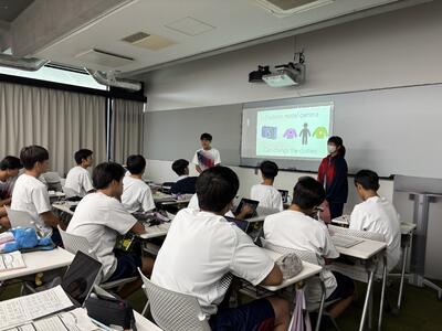 東京外国語大学のリスニング問題を活用し、英語の講義を聞いて要約文を書けるようになることを目標にし、語彙の習得、メモの取り方、要約の仕方を学びました。参加生徒は、高度な英語に一生懸命取り組んでいました。