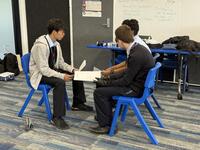 2年次のCIRが中心となって進める ALGL:Active Learning for Global Leaders では、2回目のパフォーマンステストを行っています。最終目標であるクラス内ディベートのために、今回のテストは、反論 Rebuttal の力を試します。生徒が引いたカードに書かれたテーマ(電気自動車、野球、ラザニアなど)について、CIR が意見 Opinion、理由 Reason、例 Example を言い、それを聞いてメモ Active Listening し、反論 Rebuttal する活動です。生徒は、英語をフルに使う活動を要求されるので、緊張しながらも一生懸命取り組んでいます。