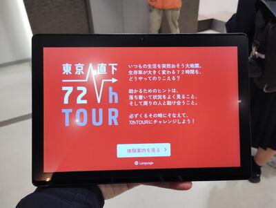 防災体験学習として、タブレット端末を使ったクイズに答えながら地震発生から避難までの流れを体験しました。施設内には被災した市街地のジオラマや防災グッズの展示コーナーがあり、被災時に必要な行動や日頃からの備えをリアルに学習することが出来たようです。