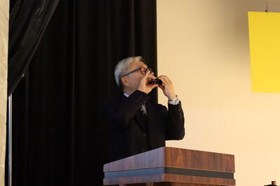 会の幕開けでは、校長先生が最近練習し始めたというオカリナ演奏を披露してくださいました。会場は優しい音色に包まれ、温かい雰囲気の中で会がスタートしました。続いて、軽音楽部の4グループによる演奏が行われました。個性あふれるステージを披露し、会場は大いに盛り上がりました。その後はビンゴ大会が行われ、モバイルバッテリーやヘッドホンなどの豪華な景品も用意されており、番号が発表されるたびに歓声が上がりました。