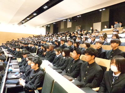本日、2年次1回目の年次集会を大ホールで行いました。年次の教員の紹介の後は、主任から、教務部から、生徒指導部からの話がありました。