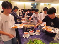 夕食は再び豪勢なバイキングでした。どの料理もとても美味しくいただき、明日の活動に向けて英気を養いました。