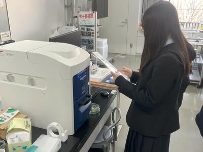 E班の研究タイトルは「珪藻がプラスチックへ付着する過程の解明」です。今日は電子顕微鏡を使って、試料の観察をしていました。本校に電子顕微鏡が常設されて4か月、生徒たちはすっかり使用法を自分のものにしているようです。