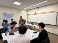 午前中の講義の様子です。4日目のプナホウ高校での発表に向けて課題研究の内容の発表し、発音やプレゼンテーションの改善点を指摘していただきました。