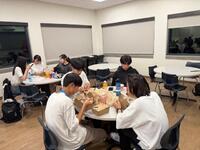 ここで本日の夕食を購入したのですが、初めてのスーパーの大きさ、そして物価の高さにとまどいながらも、計算をしながら思い思いの買い物をしていました。そしてドミトリーに戻ってそれぞれが購入したもので夕食タイムです。