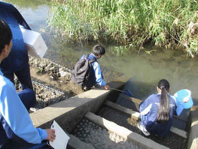 18日(土)10月の野外調査に出かけました。気温が下がってきたため、比較的活動しやすかったです。生えている植物の様子は先月とだいぶ異なっていて、今まで観察できなかったものも多くみられました。今回は昆虫だけでなく、魚類の捕獲も目的にしていましたが、数匹捕まえるのも一苦労でした。帰りがけには釣りをしている方から魚をいただき、現在学校で飼育・観察しています。ありがとうございました。