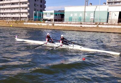 強風の中、 女子ダブルスカル、男子シングルスカルが戸田ロングレースに出場!