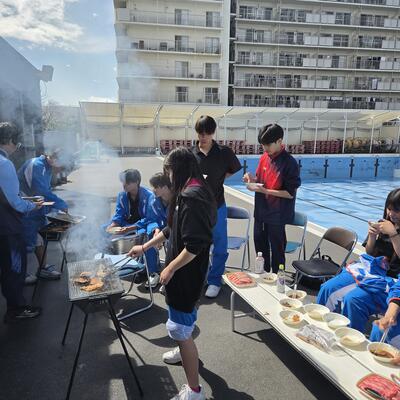 その労を労って今年はプールサイドでバーベキューを行いました。