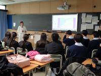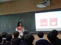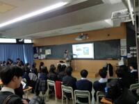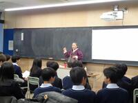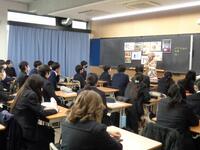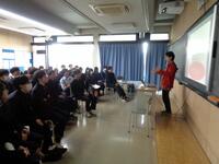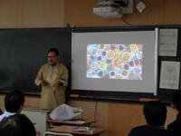 続いて、荏原先生より「人が想像できることは必ず実現できる~発展途上国医療への挑戦~」について研究の内容とともに話されました。材料科学や、現在研究されているスマートポリマーを医療に活用させようとする試みについて生徒に話されました。生徒は、相づちを打ちながら真剣に話を聞いていました。