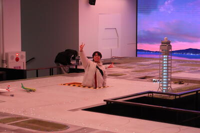80分の1サイズの精巧なミニチュアで再現された宇宙センターや世界の街、アニメの世界を体験しました。各エリアにある青く光るボタンを押して目の前のフィギュアを動かしたり、ジオラマの中に入り込んだような写真を撮ったりして楽しんでいる様子が見られました。