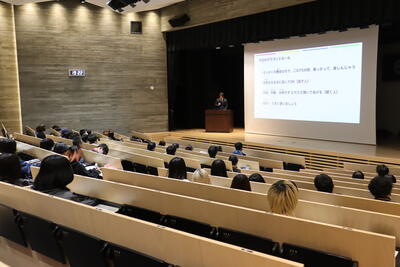 校長先生から「人によって色・音・言葉などの受け取り方が異なること」について講話がありました。特に言葉は発する側と受け取る側で感じ方が微妙に異なっていると、うまくいくものもいかなくなってしまう可能性があります。様々な物事について他の人はどう思うかという点をぜひ考えてほしいと思います。